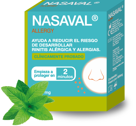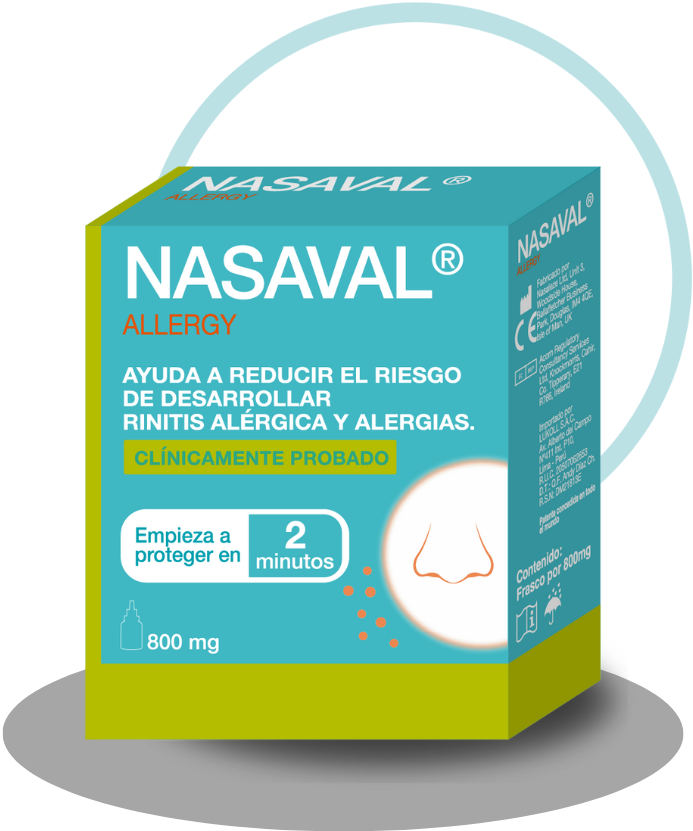 ¿Alergias? ¿Gripe? ¿Ambientes contaminados? NASAVAL® es un spray nasal en polvo que en solo dos minutos forma una barrera protectora en tu nariz, impidiendo que virus, alérgenos y partículas contaminantes entren en contacto con tu organismo.